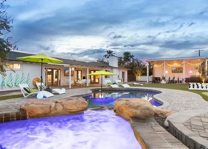 Villa se trouve dans le quartier Camelback East, à 25 minutes de marche d'attractions de divertissement telles que le manoir Wrigley. Les amateurs de shopping apprécieront la proximité du Biltmore Fashion Park, à 1 km. La randonnée en montagne est accessible à 15 minutes en voiture de la propriété.